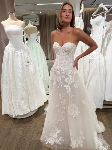 The dreamiest A-Line gown with a sweetheart neckline made with a mixture tulle and lace. An elegant, flowy, timeless soft look.